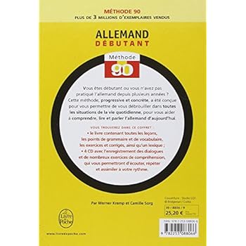 Vous êtes débutant ou vous n'avez pas pratiqué l'allemand depuis plusieurs années ? Cette méthode, progressive et concrète, a été conçue pour vous permettre de vous débrouiller dans toutes les situations de la vie quotidienne, pour vous aider à comprendre, lire et parler l'allemand d'aujourd'hui. Vous trouverez dans ce coffret : ? le livre contenant toutes les leçons, les points de grammaire et de vocabulaire, les exercices et corrigés, ainsi qu'un lexique ; ? 4 CD avec l'enregistrement des dialogues et de nombreux exercices de compréhension, qui vous permettront d'écouter, répéter et assimiler à votre rythme.